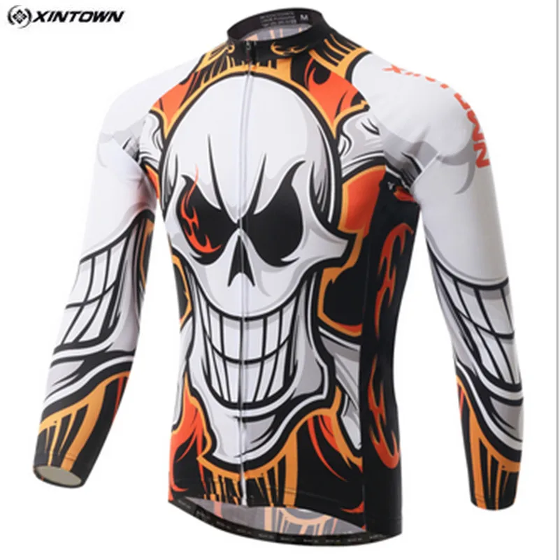 Hot Men Skull Bike Long jersey Pro Team Cycling clothing Riding Top MTB Ropa Ciclismo Wear Maillot