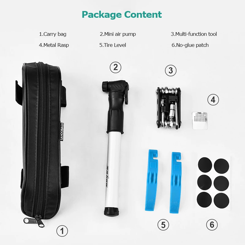 HOT SALE Sahoo 21046 Multifunction 14 in 1 Cycling Bike Bicycle Repair Tool Kit Set with Top Tube Bag Air Pu